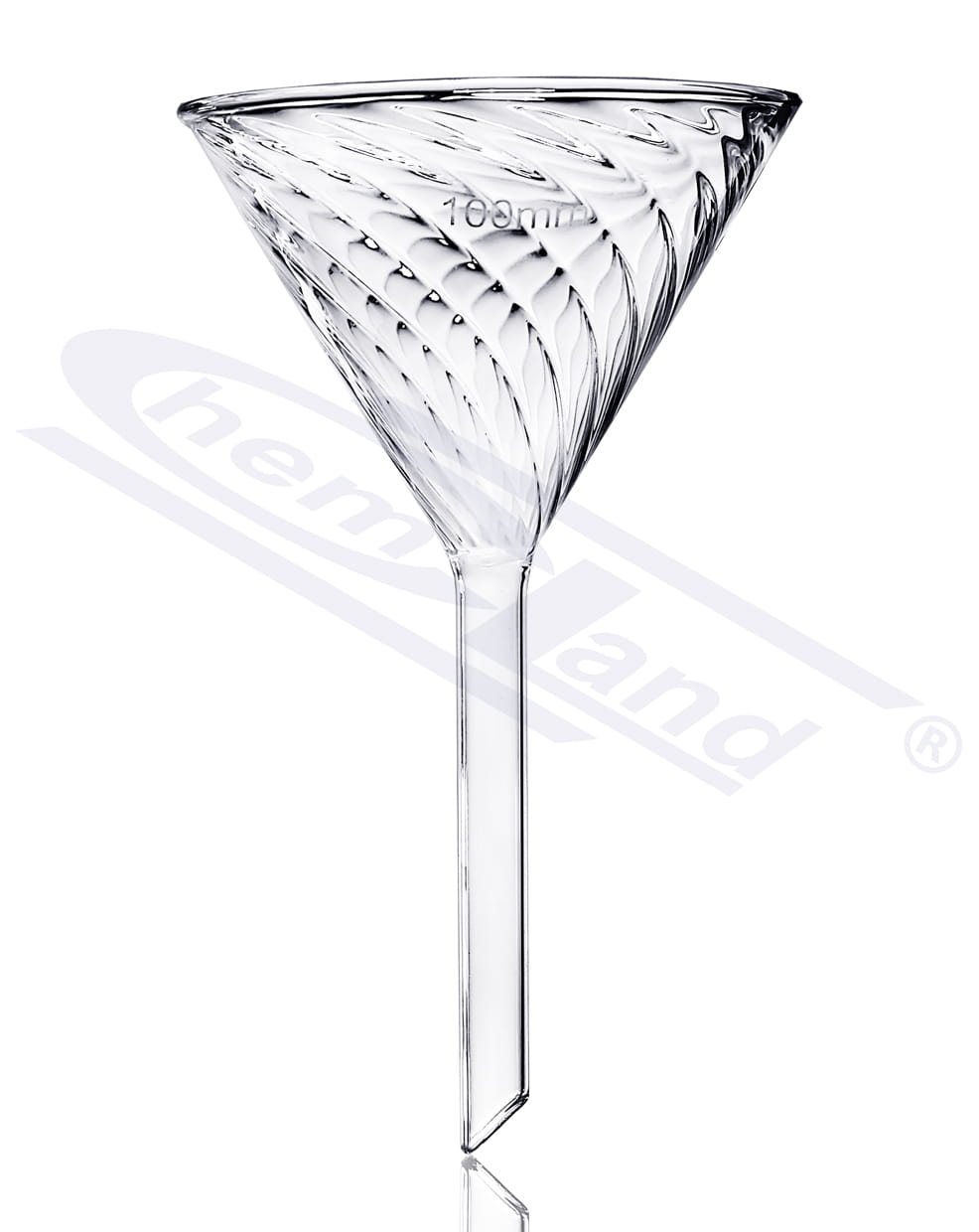 Szklany lejek laboratoryjny fi 070mm do szybkiej filtracji z rowkami. CHEMLAND